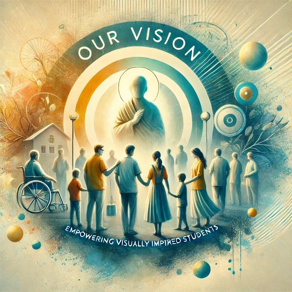 To empower visually impaired students by removing barriers to education, healthcare, and daily living, helping them build independent, fulfilling lives.